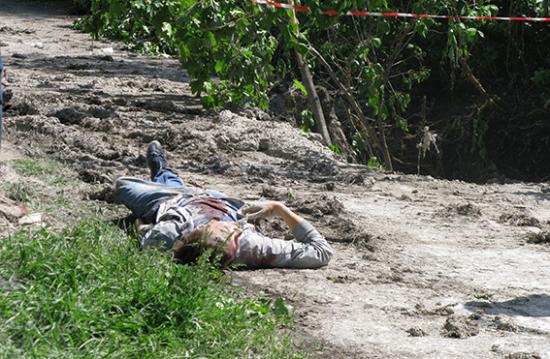 В 20:00 в антикризисный центр поступила информация, что по адресу пер. Днепропетровский, 3 во дворе лежит женщина без сознания. На место происшествия была вызвана ГУ ГСЧС Украины в Луганской области. Работники скорой помощи констатировали, что 45 летняя женщина скончалась предположительно от полученного ранения осколком в голову при взрыве в соседнем доме.