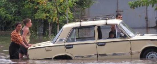 По данным метеостанции "Мелитополь", за ночь в городе выпало 86 миллиметров осадков, а скорость ветра достигала 24 м/с. Ливневые канализации не выдержали потоки воды.