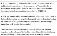 По данным газеты, Центральное командование США запросило у Пентагона дополнительный персонал военной разведки для поддержки операций против Ирана как минимум на 100 дней, а вероятно — до сентября.