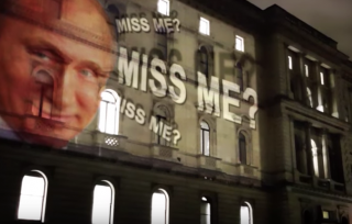 На фасад здания Министерства иностранных дел Великобритании в Лондоне спроецировали изображение президента России Владимира Путина. Проекция улыбающегося лидера страны сопровождалась надписью «Miss Me?» («Скучали по мне?»).