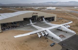 В пустыне Мохаве (штат Калифорния) впервые выкатили из ангара самый большой транспортный самолёт "Stratolaunch". Об этом сообщает пресс-служба компании.
