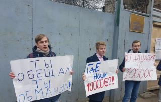 Молодые люди, встречавшие Алексея Навального после его освобождения из под стражи за организацию несанкционированной акции на Манежной площади 26 марта, встали с плакатами у спецприёмника № 2 с вопросами к оппозиционеру.