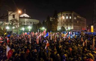 Ночные протесты под Сеймом Польши продолжились и утром, ближе к полудню демонстранты прошли маршем к Президентскому дворцу.