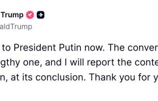 Трамп заявил в своей соцсети о разговоре с Путиным (новость дополняется)