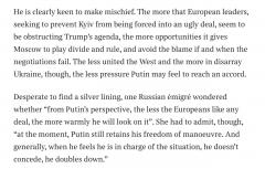 Заявления Путина о том, что европейские лидеры саботируют сделку по Украине, «вызывают некоторое сочувствие в Вашингтоне и даже в самой Европе»