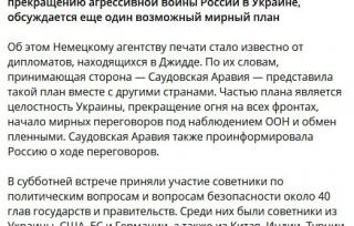 Саудовская Аравия на саммите в Джидде, посвященном Украине, выдвинула мирный план, который поддержали несколько стран.