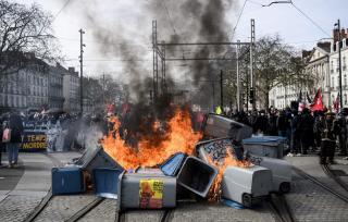 В многих городах Франции в понедельник начались новые протесты после провала вотумов недоверия Правительству и утверждения пенсионной реформы.