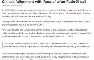 Госдепартамент США выразил обеспокоенность по поводу "союза" Китая с Россией после видеоразговора президента РФ Владимира Путина и главы КНР Си Цзиньпиня.