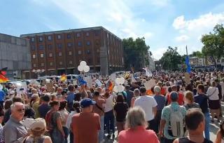 Около двух тысяч русскоязычных демонстрантов вышли на протест в немецком Кельне в воскресенье, требуя от Германии прекратить поддержку Украины и отменить санкции против РФ.