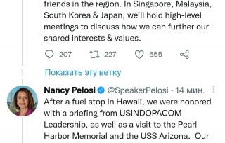 Пелоси не указала Тайвань среди целей своего азиатского турне