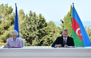Глава Еврокомиссии Урсула фон дер Ляен и Комиссар Евросоюза по энергетике Кадри Симсон подписали 18 июля меморандум по поставкам газа в Европу с Президентом Азербайджана Ильхамом Алиевым.