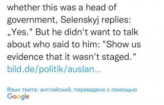 Президент Зеленский рассказал в интервью Bild, что глава правительства одной из стран Евросоюза затребовал доказательства, что резня в Буче не была постановкой Украины.