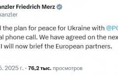 «Я только что обсудил план мира для Украины с президентом США в хорошем и конфиденциальном телефонном разговоре.