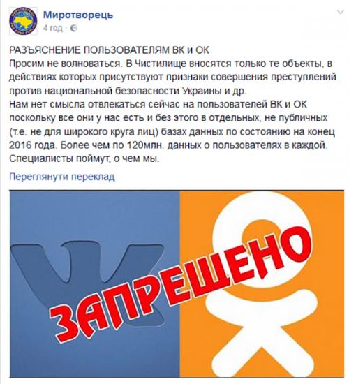 При этом Миротворец остроумно отмечает, что нет смысла тратить время на пользователей ВК и ОК, "поскольку все они уже есть в отдельных, не публичных (то есть не для широкого круга лиц) базах данных по состоянию на конец 2016 года".