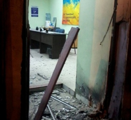 В результате взрыва пострадал вход в здание, где располагается Координационный совет Евромайдана и припаркованная рядом машина. В самом здании выбиты окна.