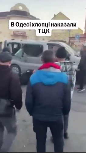 В Одессе люди разбили окна микроавтобуса ТЦК и помогли высвободиться оттуда «бусифицированным»
