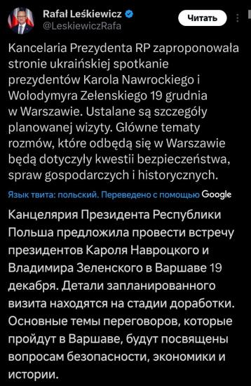 По её данным, такое предложение направлено Киеву. Напомним, Зеленский уже подтвердил свой визит в Варшаву в эту пятницу.