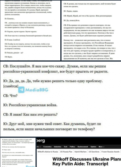 В России это назвали фейком: потенциально большой скандал в США - Bloomberg опубликовал стенограммы, как утверждается, телефонных разговоров помощника Путина Ушакова со спецпредставителем Трампа Уиткоффом и с Кириллом Дмитриевым