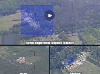 В сети появились кадры удара, как утверждается, по лагерю подготовки украинских военных в Сумской области, которые публикуют украинские и российские каналы