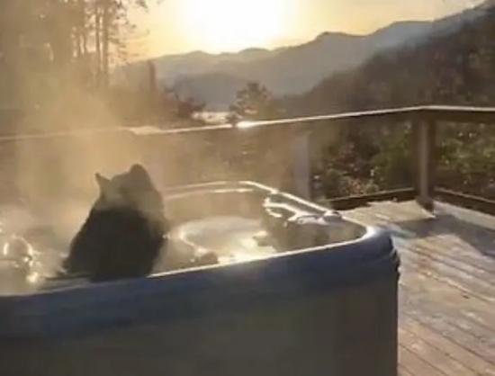 В национальном парке Грейт-Смоки-Маунтинс, штат Теннесси (США), дикий медведь пробрался во двор арендованной хижины и залез погреться в джакузи.