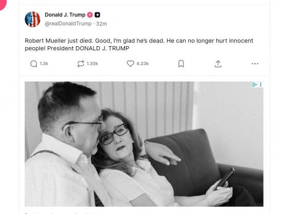Сам Трамп уже заявил что рад смерти Мюллера.