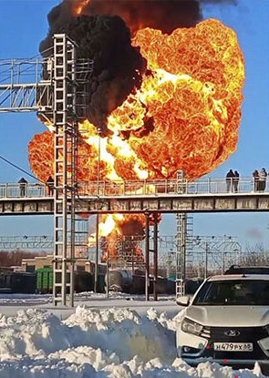 Впоследствии над горящими вагонами поднялся столб черного дыма, который россияне могут наблюдать с расстояния в километры.