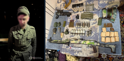 При обыске в его доме были обнаружены пулемёт, гранатомёт с боеприпасами, шесть гранат, противопехотная мина, почти 400 патронов и орден с нацистской символикой.