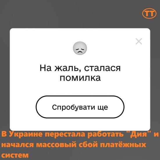В Украине перестала работать "Дия" и начался массовый сбой платёжных систем