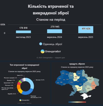 В Украине почти вдвое выросло количество потерянного и украденного оружия за последний год — теперь его около полумиллиона единиц, — Opendatabot