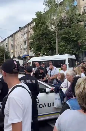В Виннице толпа людей окружила полицейскую машину и потребовала освободить сидящего там мужчину