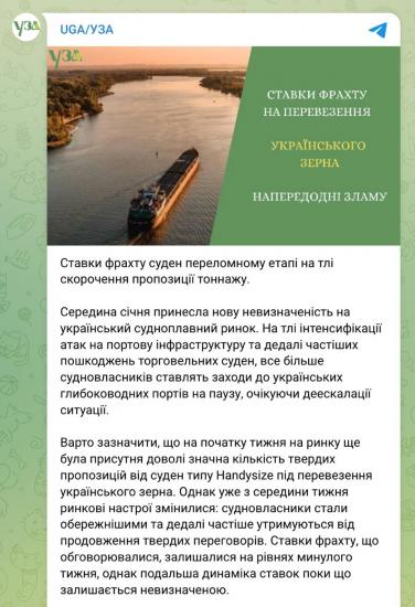 Отметим, что экспорт зерна в декабре упал на 16% после усиления атак РФ на портовую инфраструктуру.