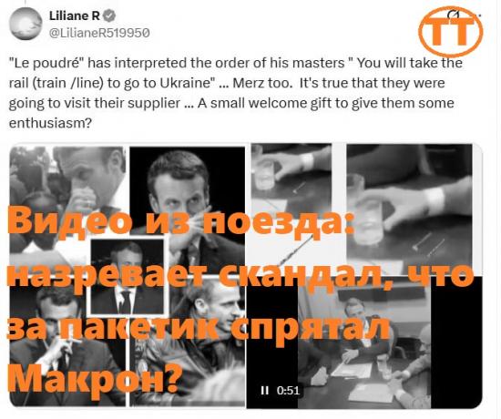 Видео из поезда: назревает скандал, что за пакетик спрятал Макрон?