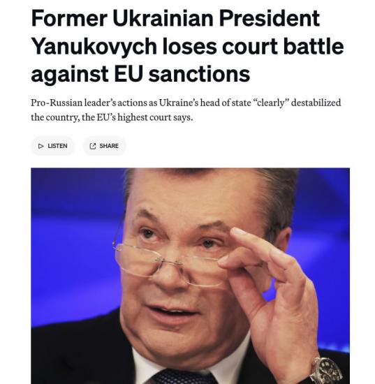 Действия Януковича на посту главы украинского государства «явно способствовали дестабилизации» страны, и ЕС поступил правильно, включив его в свой санкционный список в соответствии со своими правовыми критериями, заявил суд в своем 18-страничном решении.