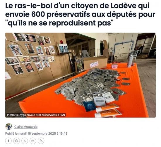 Во Франции житель Лодева отправил в парламент 600 презервативов, чтобы депутаты «не «размножались», считая их поведение недостойным, - радиостанция ici