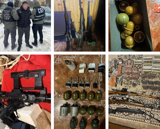 Во время обысков по месту жительства и работы подозреваемого, который работает водителем в одной из столичных больниц, изъято значительное количество оружия и боеприпасов. Среди изъятого — ручные гранаты со взрывателями, автоматическое оружие, винтовки, охотничьи карабины. Всего обыски провели по 15 адресам в Киевской, Черниговской и Днепропетровской областях.