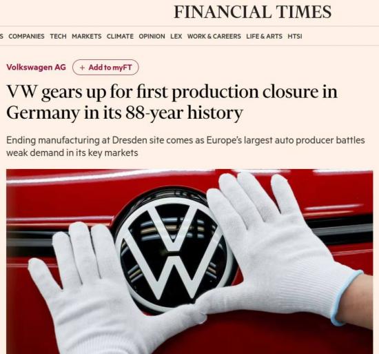 Volkswagen готовится к первому за свою 88-летнюю историю закрытию производства в Германии, - The Financial Times