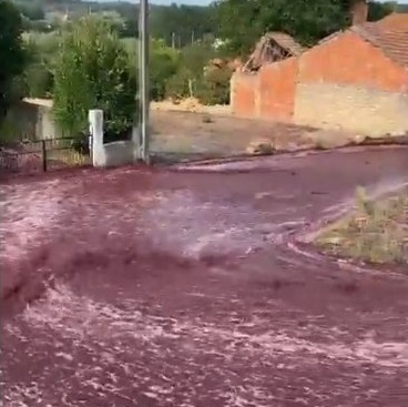 В португальском городе Анадия на ликеро-водочном заводе лопнули резервуары и вызвали огромные реки красного вина.