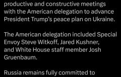 Он сообщил, что в состав американской делегации вошёл, помимо его и Кушнера, сотрудник Белого дома Джош Груенбаум.