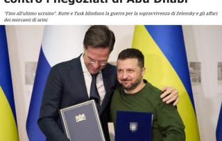 Об этом пишет итальянское онлайн-издание L'AntiDiplomatico. В частности, продолжать конфликт «за счёт украинского народа» комика Зеленского убеждают Туск и Рютте.