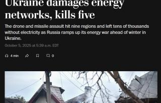 «Украина разработала новую стратегию по обеспечению электроснабжения на фоне российских ударов по энергоинфраструктуре», - «The Wall Street Journal»