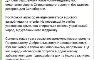 "Доложил Верховному Главнокомандующему о выполнении решений Ставки по созданию боеспособных резервов для сил обороны .