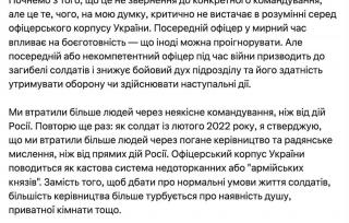 Американский доброволец Райан О'Лири, командир роты Chosen Company в составе 59 отдельной штурмовой бригады беспилотных систем, раскритиковал украинское командование и заявил о прекращении деятельности роты.