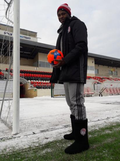 Гвинейский защитник пермяков Секу Конде из-за холода тренировался в валенках с логотипом клуба. Об этом сообщает пресс-служба "Амкара" в Twitter.