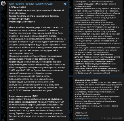 Об этом говорится в совместном заявлении глав комитетов Рады по обороне и правоохранительной деятельности.