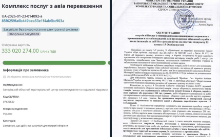 Запорожской областной ТЦК заказал услуги по авиаперевозкам на 333 млн грн.