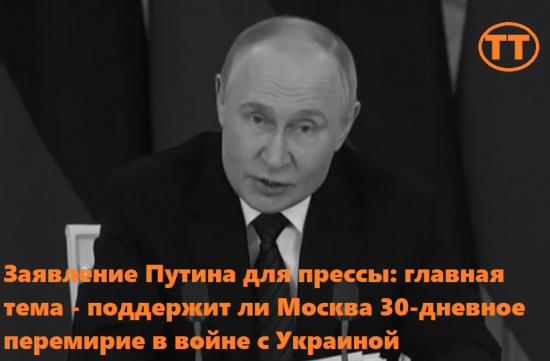 Заявление Путина для прессы: главная тема - поддержит ли Москва 30-дневное перемирие в войне с Украиной