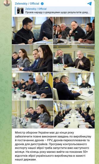 «Министр обороны Украины должен до конца года обеспечить полное выполнение задач по производству и поставке дронов – FPV, дронов-перехватчиков и дронов для дипстрайков. Программу контролируемого экспорта нашего оружия нужно запустить уже в следующем месяце.