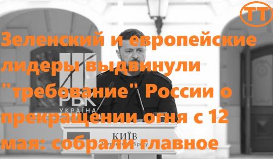 Зеленский: «с понедельника, 12 мая, должно начаться полное и безусловное прекращение огня по меньшей мене на 30 дней, и требуем этого от России.