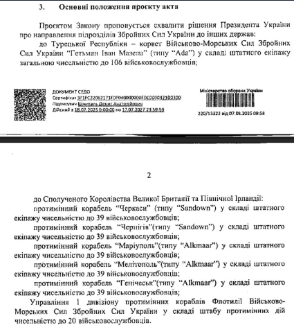Министр обороны Шмыгаль пояснил, что этот закон необходим для отправки украинских подразделений в Турцию и Великобританию с целью получения сложной военной техники и освоения ее использования.