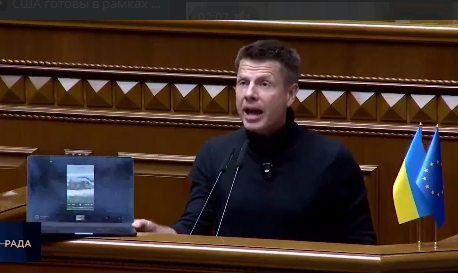 Нардеп Гончаренко принес на трибуну ноутбук, на котором показал один из роликов с силовой мобилизацией.